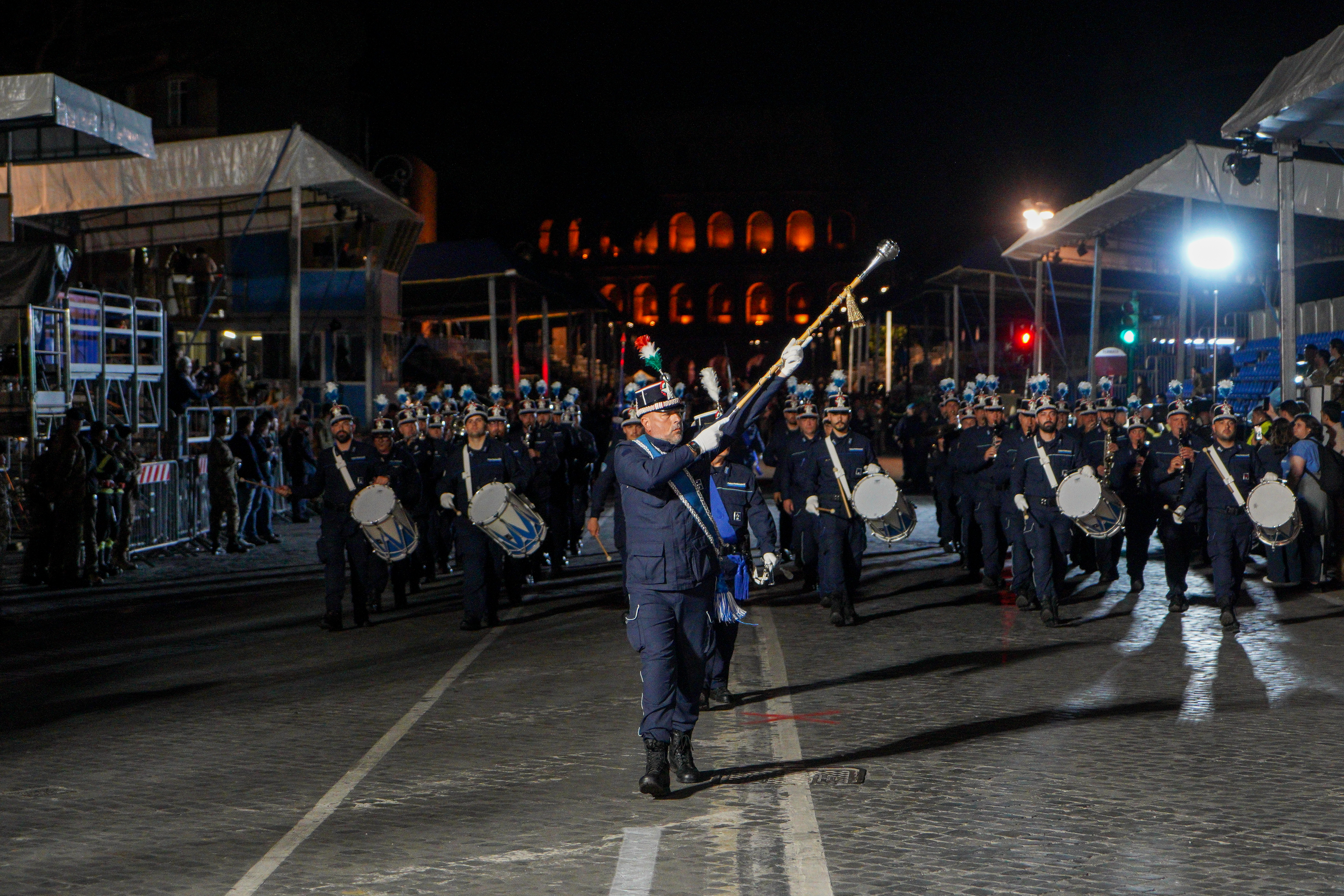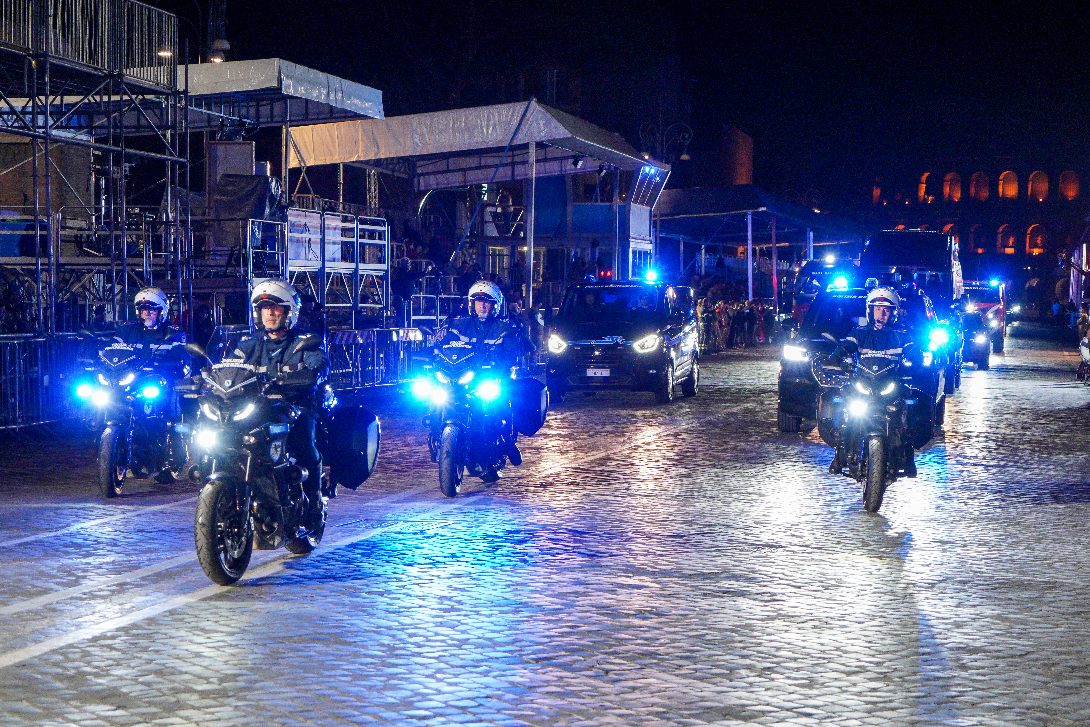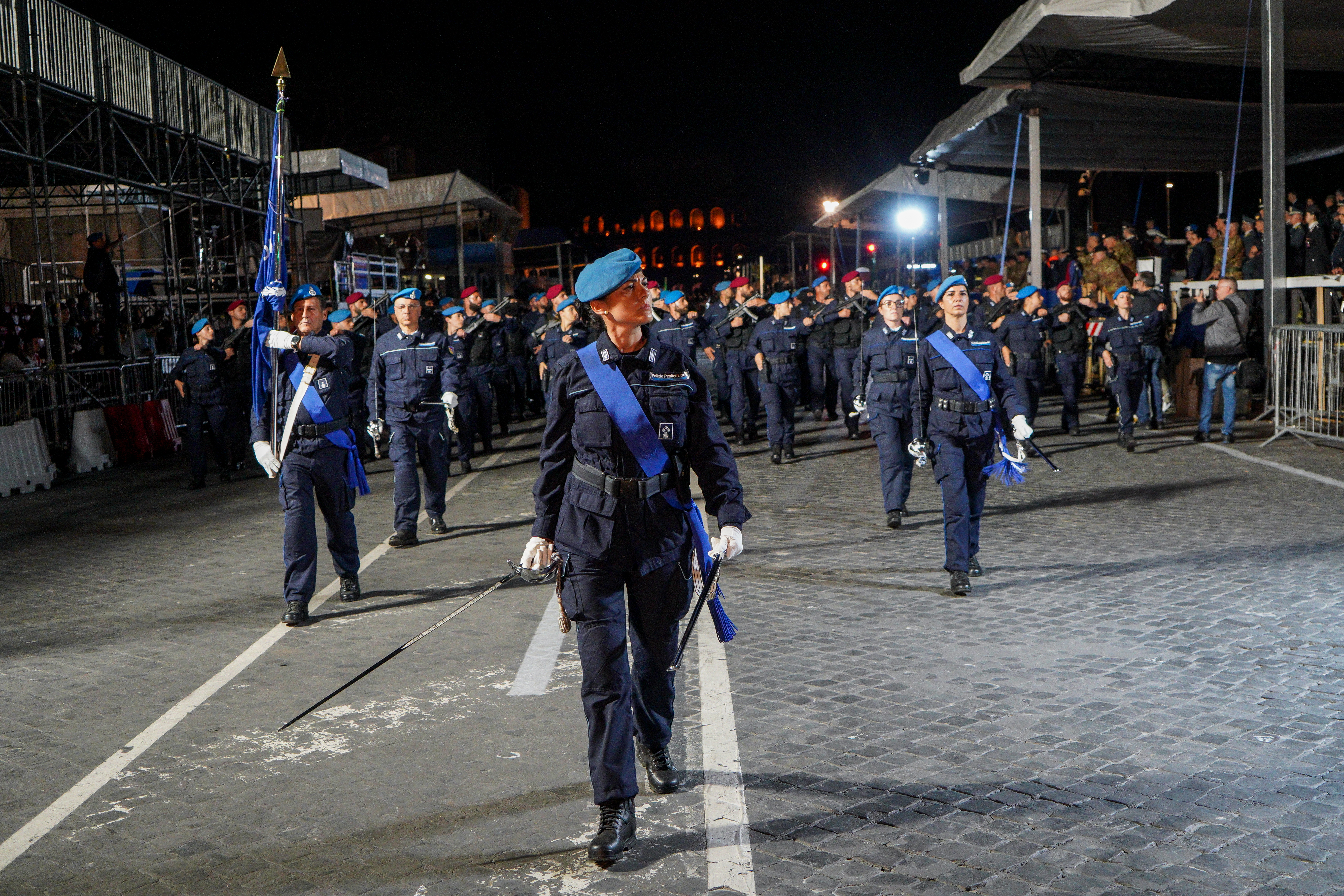 202528-29 maggio 2025. Festa della Repubblica: la prova notturna all'Altare della Patria e ai Fori Imperiali. La Banda musicale, la Compagnia mista, i mezzi e gli atleti della Polizia Penitenziaria. Con orgoglio e spirito di corpo.